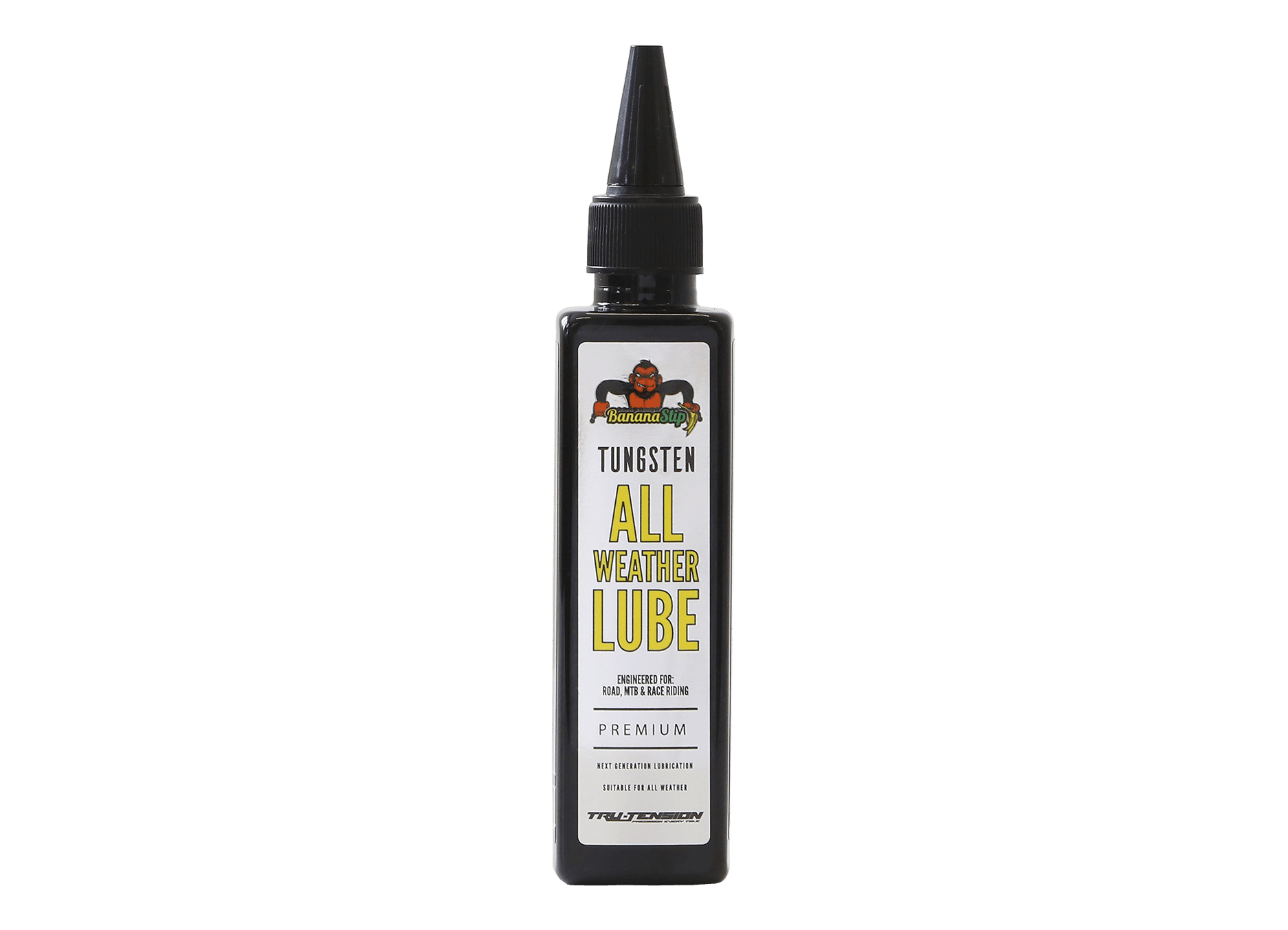 BananaSlip Tungsten All Weather Lube on huippuluokan ketjuvoiteluaine, joka yhdistää vesipohjaisen emulsion ja tungsten-disulfidin. Tämä täysin kuivuva voiteluaine muodostaa kovan ja kitkaa vähentävän kerroksen, joka ehkäisee kulumista ja parantaa voitelun kestoa. Testivoittaja Zero Friction Cycling -laboratorion testeissä: ainoa tippavoiteluaine, joka ylitti 5 000 km kulumisrajan ilman merkittävää ketjujen tai rattaiden kulumista.