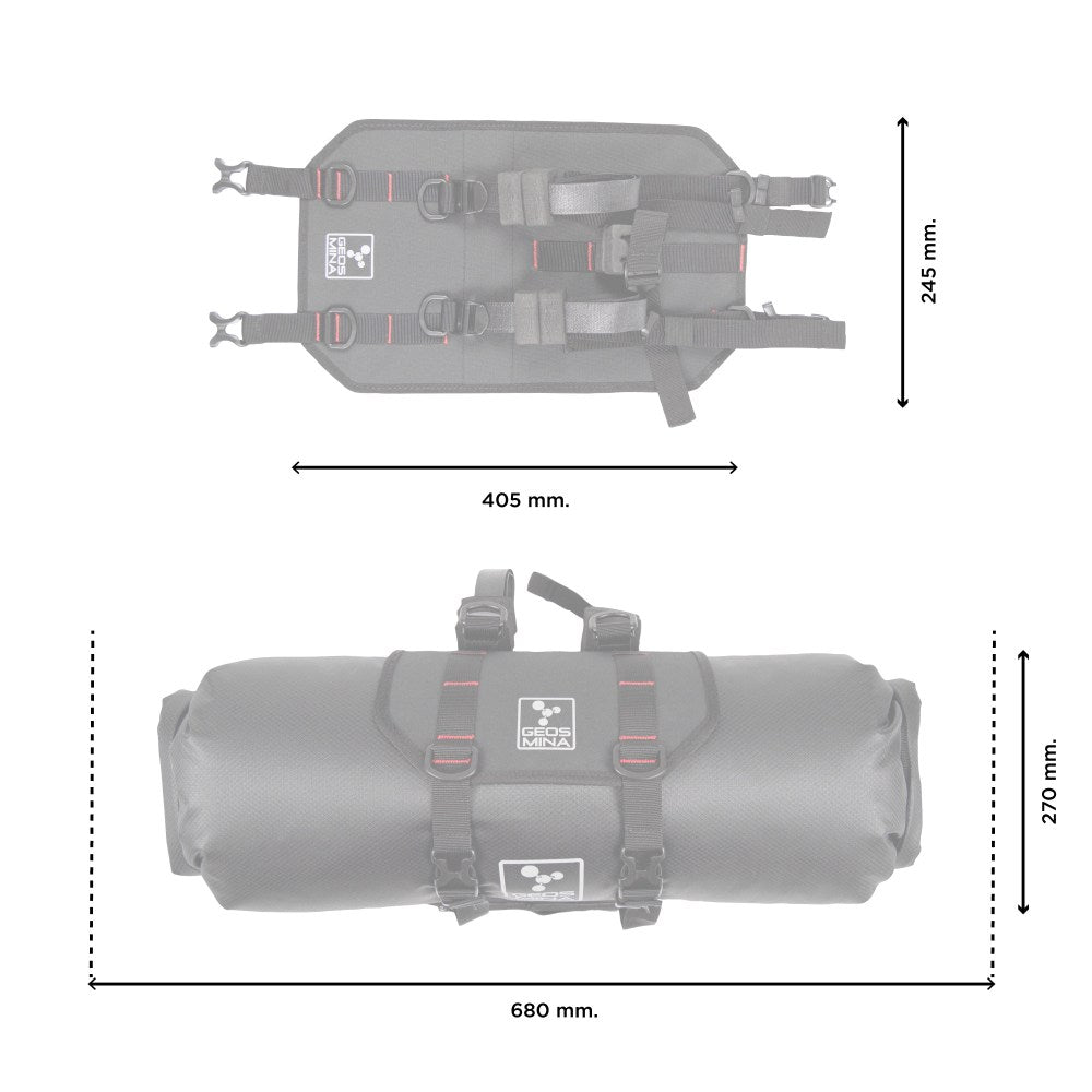 The harness roll bag is the new addition to our 2022 collection. Sen valjaat on suunniteltu erityisesti pitkän matkan bikepackingiin. Se on valmistettu korkean lujuuden termoplastisesta materiaalista ja päällystetty Nylon 600D:llä. Siinä on useita solkia, jotka mahdollistavat esineiden ja ylimääräisen kuorman lisäämisen apuremmien avulla. Valjaat kiinnitetään ohjaustankoon liian suurilla hihnoilla ja YKK:n korkealaatuisilla soljilla, jotka voidaan kiristää yhdellä kädellä. Vaihdettavat tiheäfoamiset pehmusteet vakauttavat kuorman ja vaimentavat iskuja maasta. Korkean sopeutumiskykynsä ansiosta valjaan asentaminen pyörään ja ohjaustankoon on täysin pyöräilijän mieltymyksen mukaan.