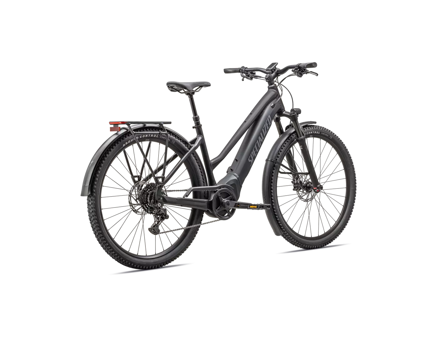 E5 Aluminum, bottom bracket motor mount, fully integrated &lockable downtube battery, internal cable routing, lock and front rack mount